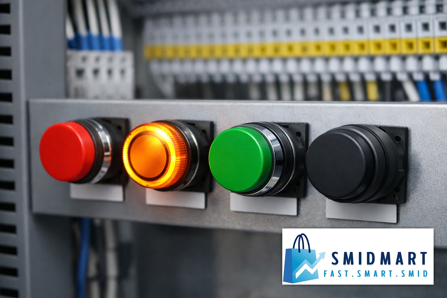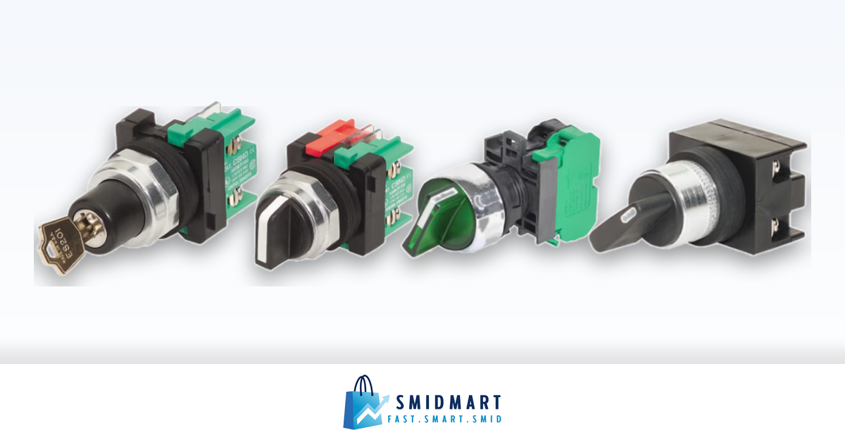 Push buttons are panel-mount switches operated by a vertical finger press to open/close electrical contacts. Choose from momentary (spring return) or alternate/maintained action, with LED-illuminated, incandescent-lamp, or non-illuminated options.