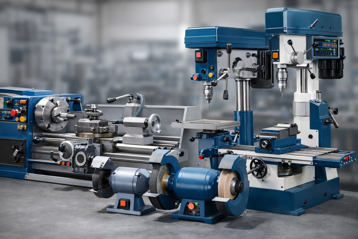 Machine tools are essential for cutting, drilling, grinding, milling, shaping, and finishing a wide range of materials such as metal, wood, stone, and plastics. This category includes machines for precision machining, production work, workshop use