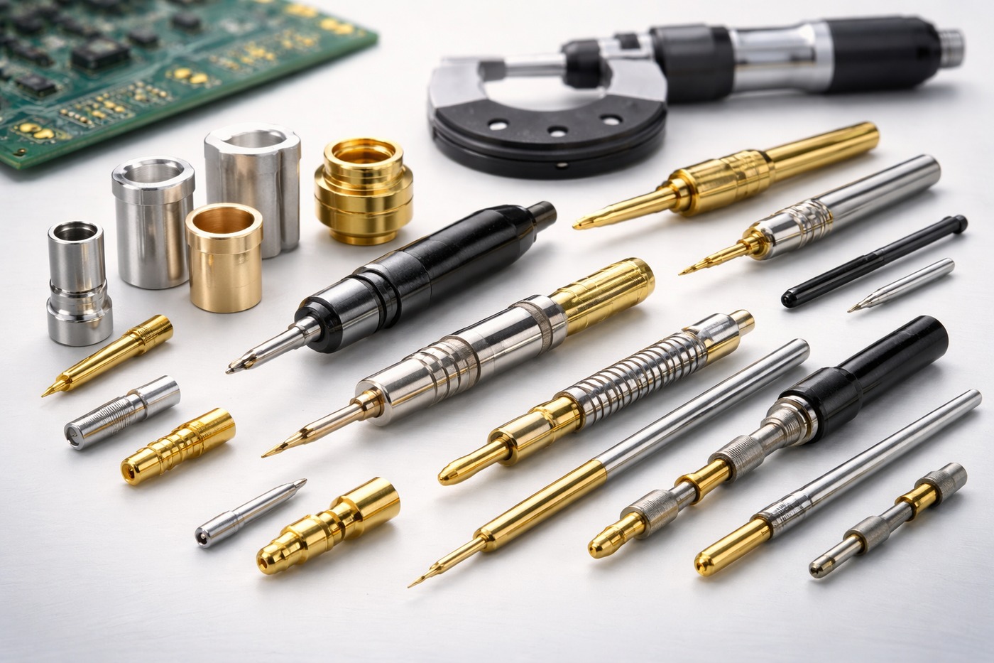 Precision contact probes for measurement, testing, PCB inspection, machine setup, and quality control applications